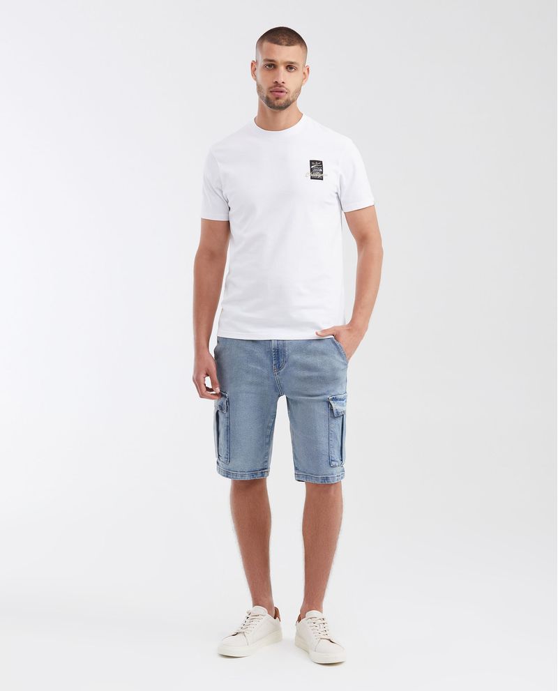 • Bermuda para hombre en denim, straight fit. Silueta recta. Color azul, tono claro.