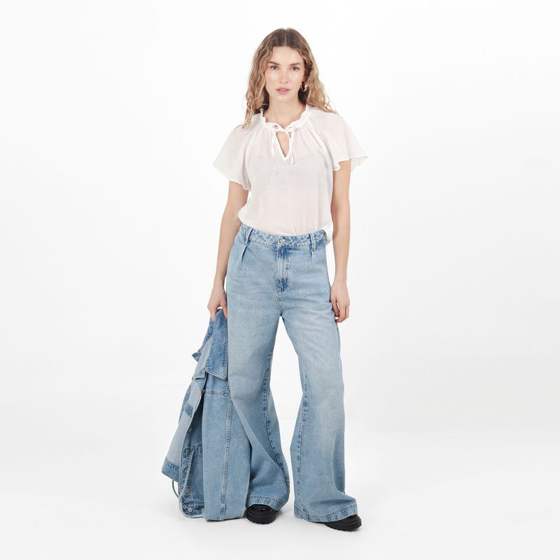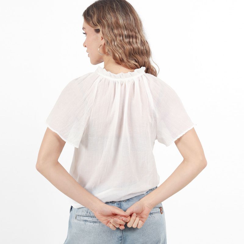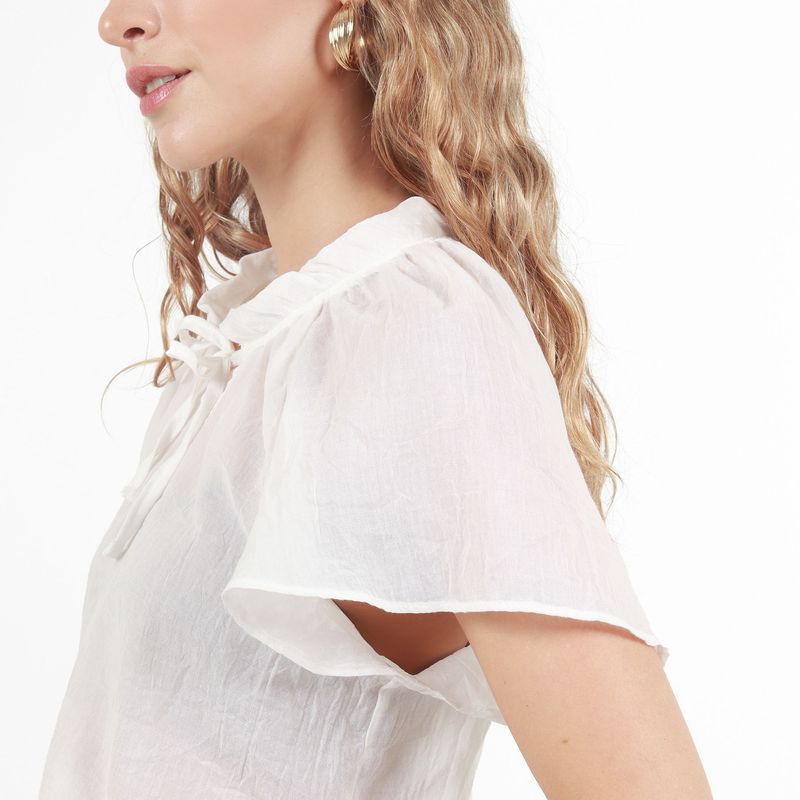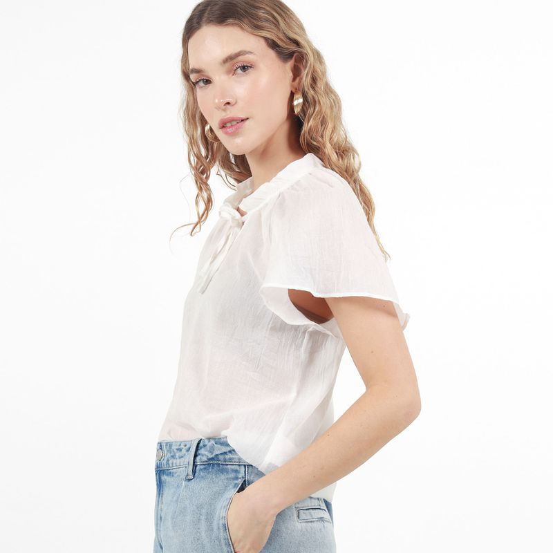 MujerRopaBlusas y CamisasBlusa Cuello Lazo Manga Corta