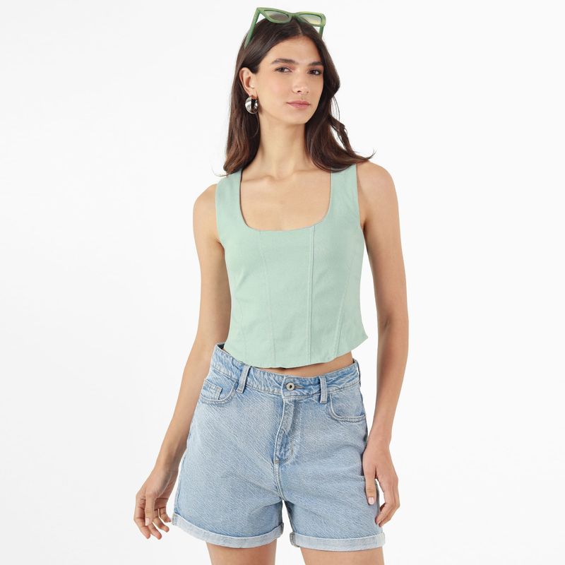 MujerRopaBlusas y CamisasBlusa Cuello U Manga Sisa