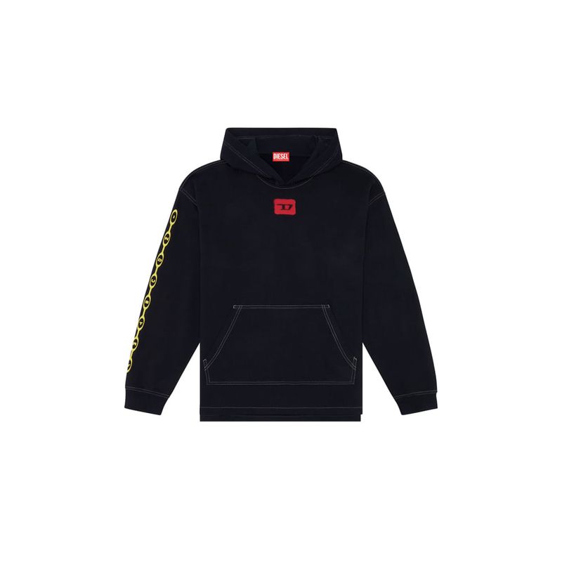 Buzo hoodie cerrado para hombre s-baxt-hood-n1. esta Sudadera de fit relaxed para hombre cuenta con un estampado digital con las animaciones de aerografía, con un aspecto desteñido especial. diseñada con capucha y pequeñas aberturas laterales, está confeccionada en tejido de algodón bouclé, y adornada con un logotipo d rojo y el icónico logotipo for successful living en la espalda.
