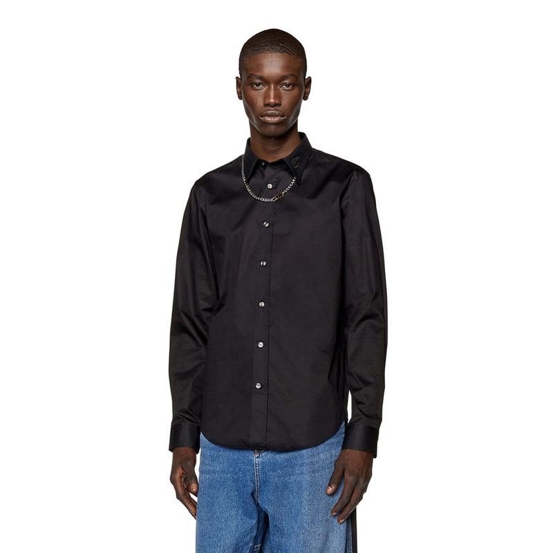 Esta camisa de microtwill para hombre está confeccionada en algodón elástico. De corte recto, presenta un cuello clásico con el logotipo oval D bordado en el mismo tono.