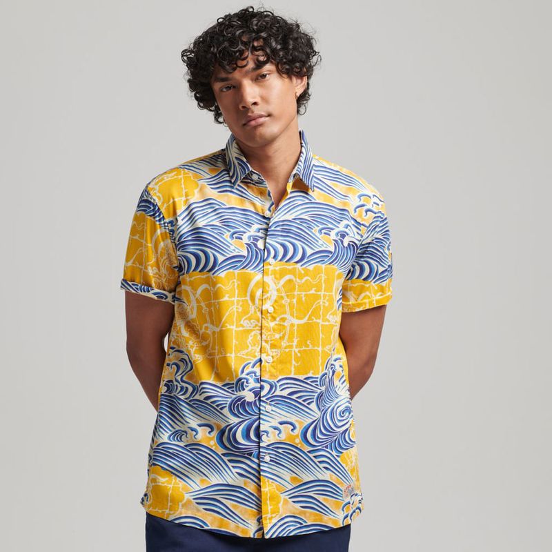 Disfruta del estilo retro con esta camisa hawaiana de manga corta. Una forma clásica de añadir un toque de vitalidad a tus looks informales, independientemente de si estás de vacaciones o no. Corte relajado: el corte clásico de Superdry. Una prenda ni muy estrecha ni muy holgada, simplemente perfecta. Elige tu talla habitual, Cuello sencillo, Cierre de botones, Insignia de Superdry, Estampado integral.