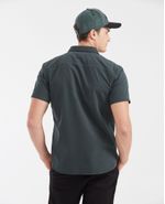 • Manga corta, cuello camisero, perilla completa con botones y bolsillos cargo con tapa y botón.