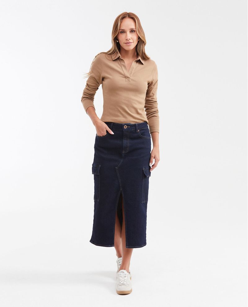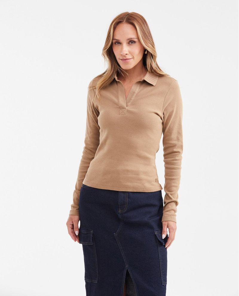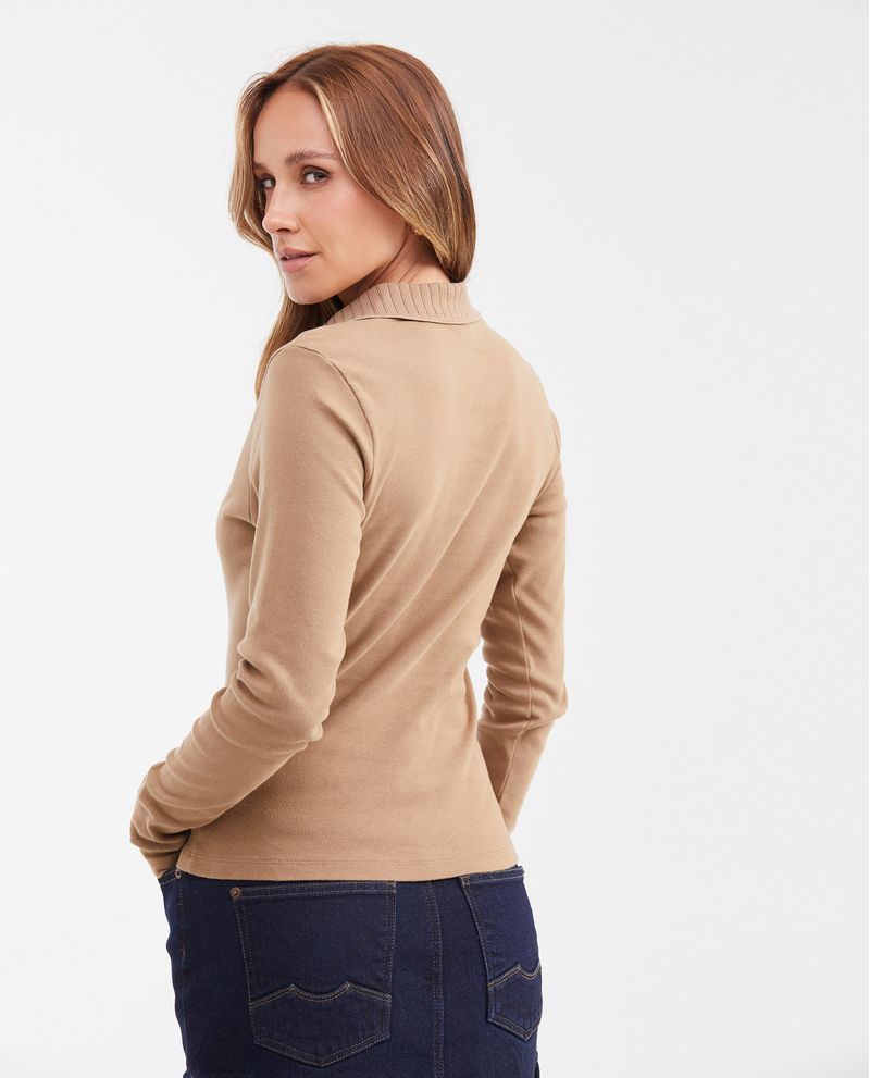 Camiseta Básica Manga Larga con Cuello Camisero para Mujer