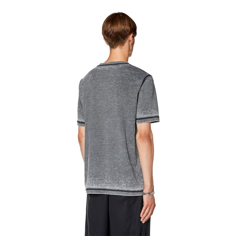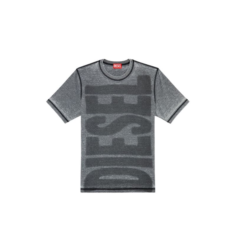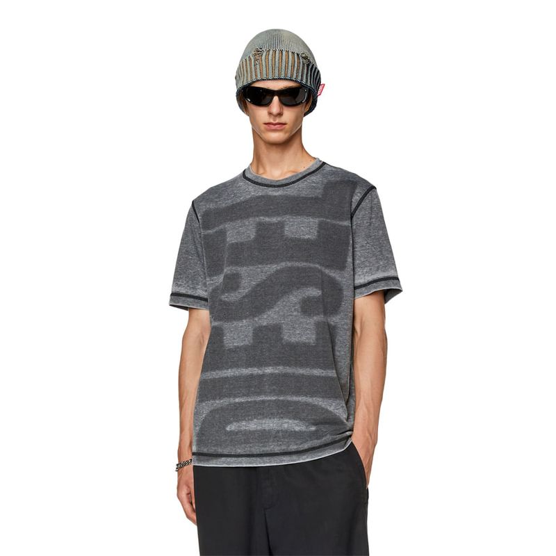 Esta camiseta de fit regular para hombre está confeccionada en tejido de mezcla de algodón. La tela está tratada con un lavado burnout para lograr que la palabra Diesel en grande tenga un tono más oscuro. Presenta costuras externas en contraste. • Composición: 65%Poliéster 35%Algodón • País Origen: La India • El modelo viste una talla L y mide 182 cm
