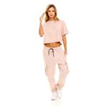 La modelo mide entre 1.70 y 1.75, la prenda superior es talla m y la prenda inferior es talla 8.