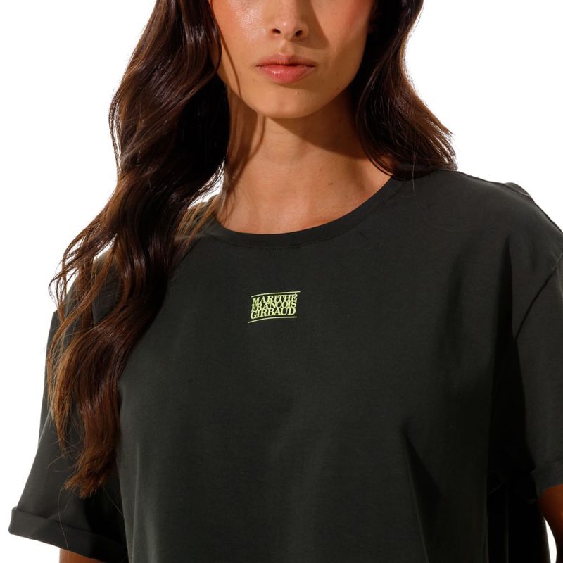 Marithé François Girbaud es una marca innovadora y vanguardista en conceptos de moda.Descubre tu outfit y no te quedes sin lo mejor de la moda internacional.Camiseta con cuello redondo, manga corta, confeccionada en algodón. Estampado en frente. Abertura en posterior con hiladilla estampada.La modelo mide entre 1.70 y 1.75, la prenda superior es talla m y la prenda inferior es talla 8.Composición:93% Algodon ,7% Elastano País origen: Colombia