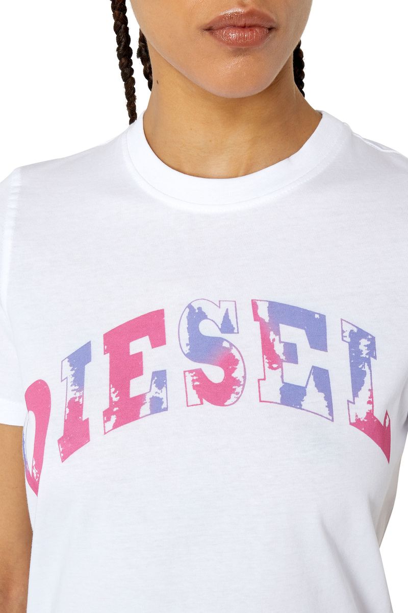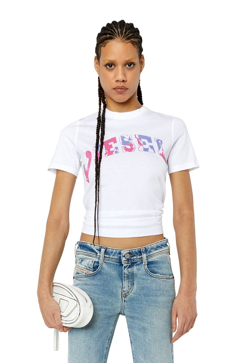 Diesel es una innovadora marca internacional de estilo de vida que produce una amplia colección de jeans, ropa y accesorios. Somos pioneros en denim y con el pasar de los años nos convertimos en una marca de ropa casual premium, siendo una verdadera alternativa en el mercado de lujo establecido. Somos una marca que representa la pasión, la individualidad y la autoexpresión. El Mundo DIESEL te espera. Camiseta para mujer hecha de suave tejido de algodón. Tiene un estampado curvo y delineado de Diesel en el pecho y presenta un patrón veteado de dos tonos. 100%Algodón País Origen: China