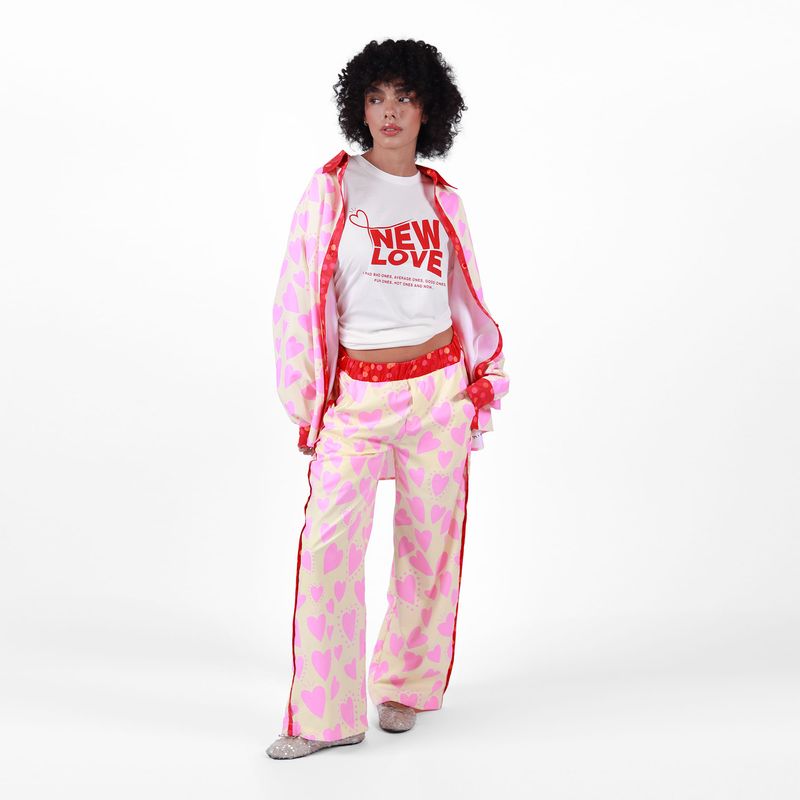 Colección exclusiva FDS by Sacré. Camiseta de silueta relax con estampado localizado y bordado corazón en la manga. La pieza perfecta para llevar en la temporada de amor y amistad.
