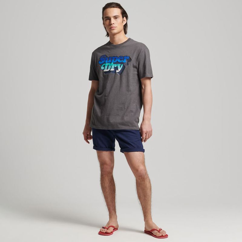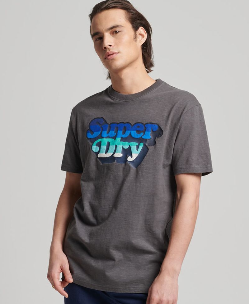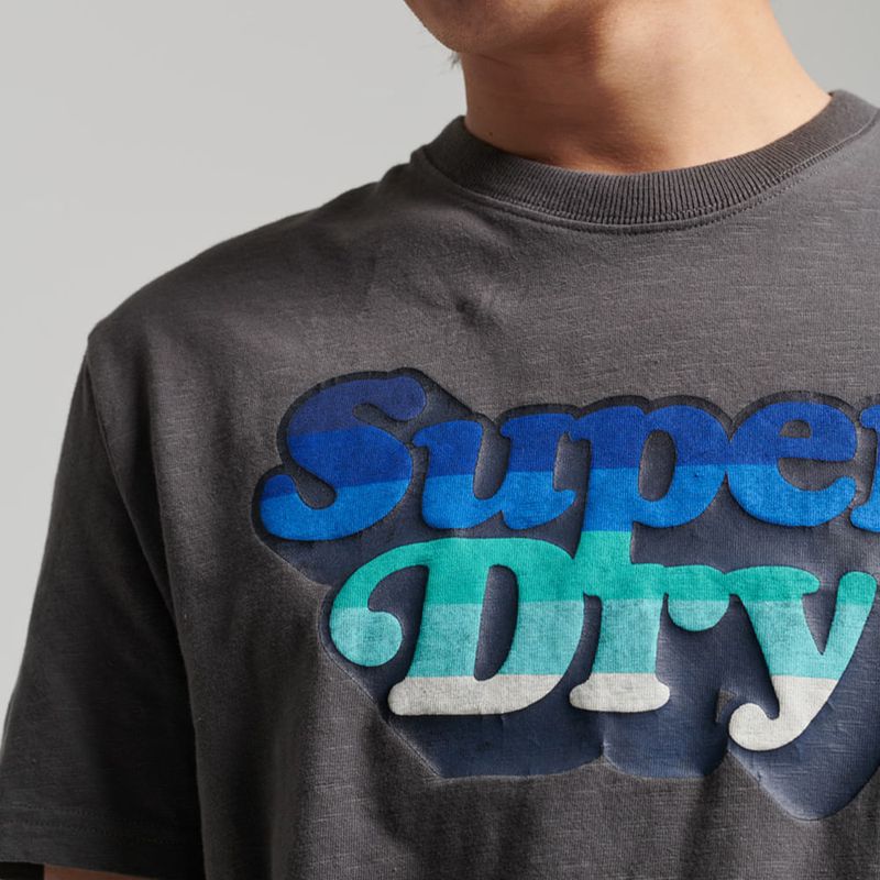 Multiplica el impacto de tus looks informales con esta camiseta que añadirá un toque veraniego a cualquier conjunto. Gracias a su estampado nostálgico y a su diseño clásico, hará que sientas ese estilo veraniego todo el año. Corte relajado: el corte clásico de Superdry. Ni muy estrecho, ni muy holgado, simplemente perfecto. Elige tu talla habitual, Cuello redondo de canalé, Manga corta, Logotipo estampado con efecto desgastado, Etiqueta con el logotipo de Superdry.