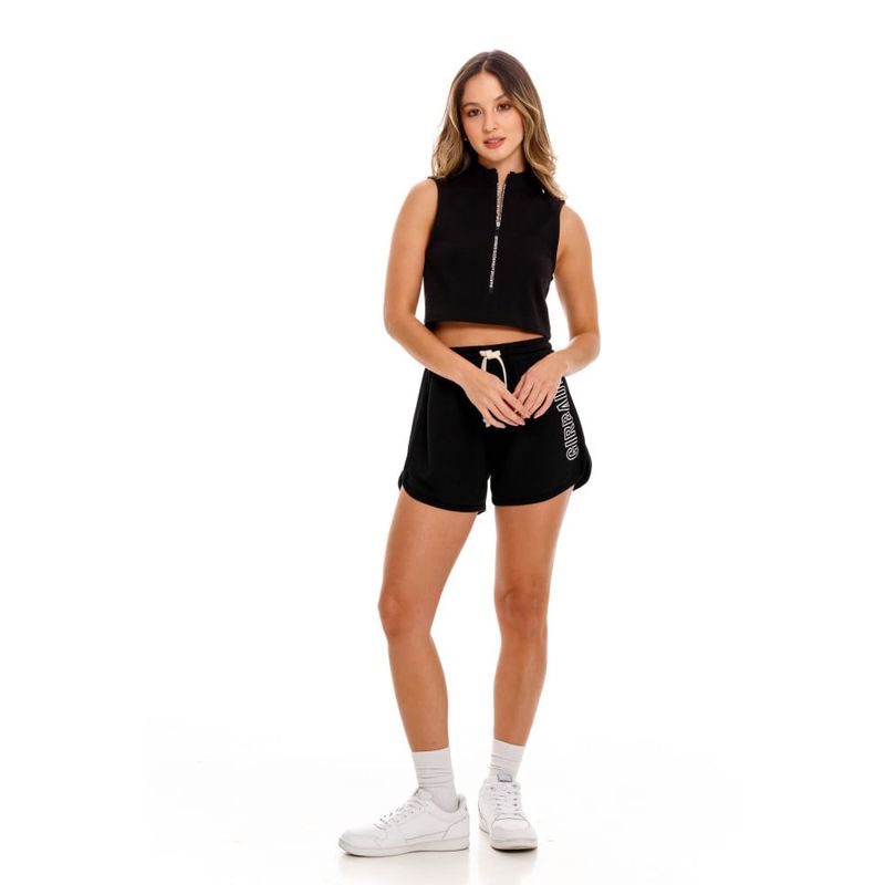 La modelo mide entre 1.70 y 1.75, la prenda superior es talla m y la prenda inferior es talla 8.