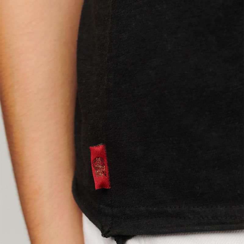 Disfruta del toque roquero del estilo de la vieja escuela con esta camiseta. Esta prenda es una forma sencilla de vestir para los días más cálidos y las noches más tranquilas. Además, presenta nuestro logotipo nostálgico de estilo vintage adornado con strass brillante, que le aporta un encanto distintivo y un estilo elegante atemporal. Corte entallado: con un diseño que se ajusta más al cuerpo y proporciona un look más elegante, Cuello redondo pronunciado, Diseño sin mangas, Gráfico estampado con strass, Etiqueta con el logotipo de Superdry.