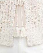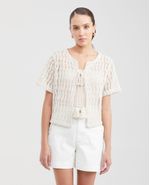 • Diseño con manga corta, cuello redondo y frente abierto con cordón para anudar.