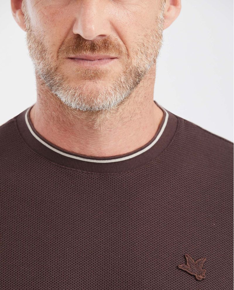 • Manga corta, cuello redondo tejido con línea en contraste.