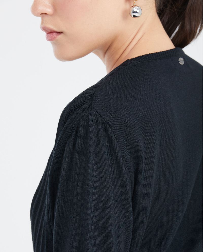 • Propuesta en tejido jersey liviano con puños y fajón en tejido acanalado.
