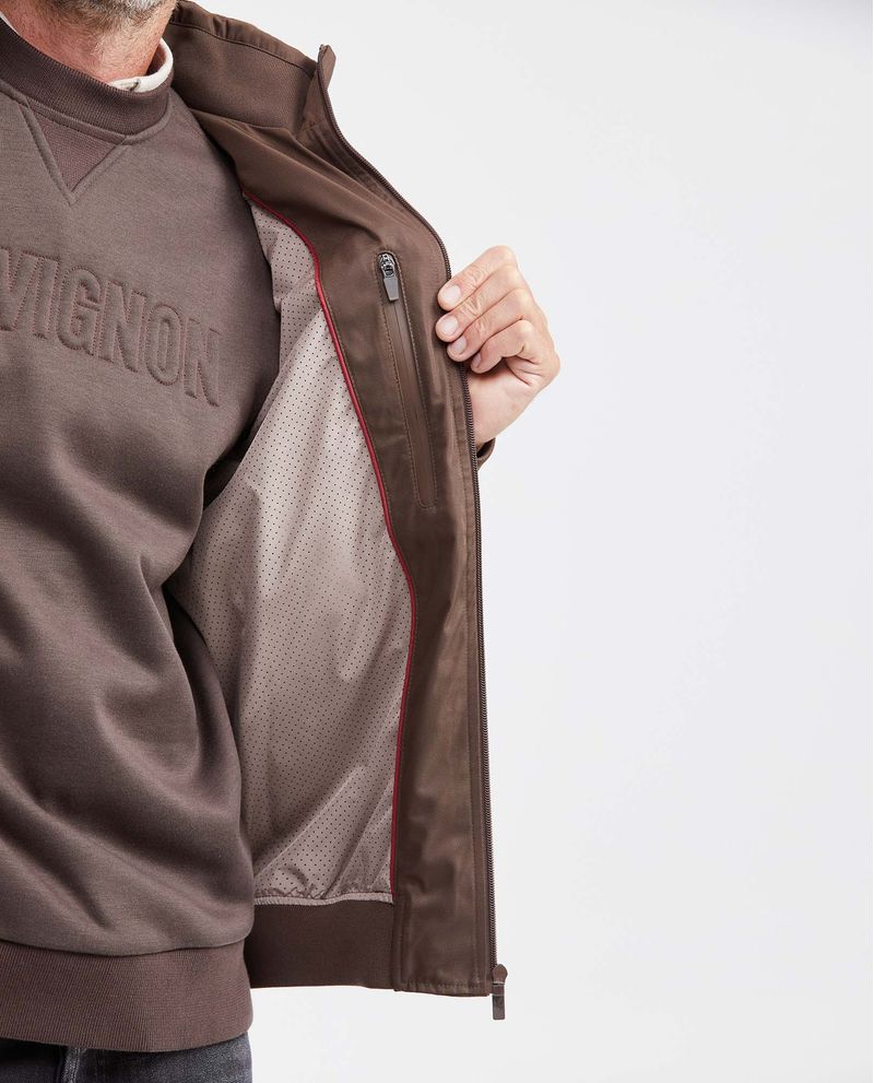 • Chaqueta para hombre, silueta bomber con capucha oculta.