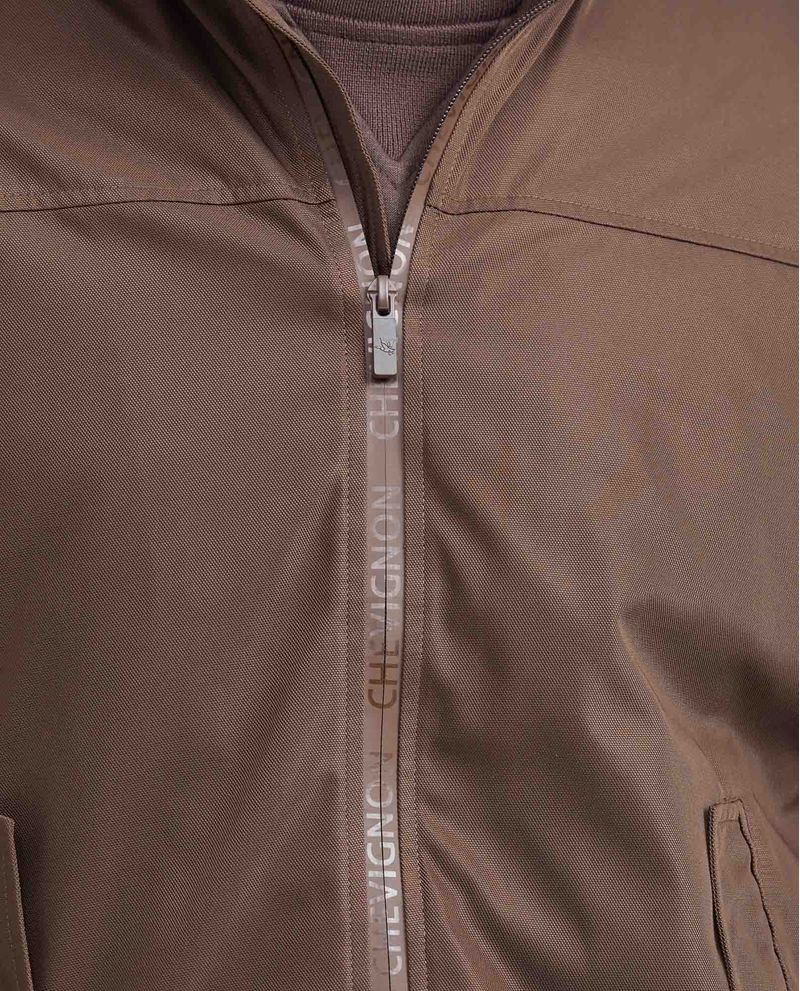 • Cuello alto, capucha guardada en el interior del cuello, cierre impermeable, puños y fajón en tejido rib, bolsillos de ribete con tapa y sistema de cierre magnético.