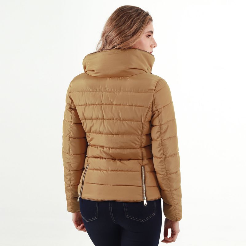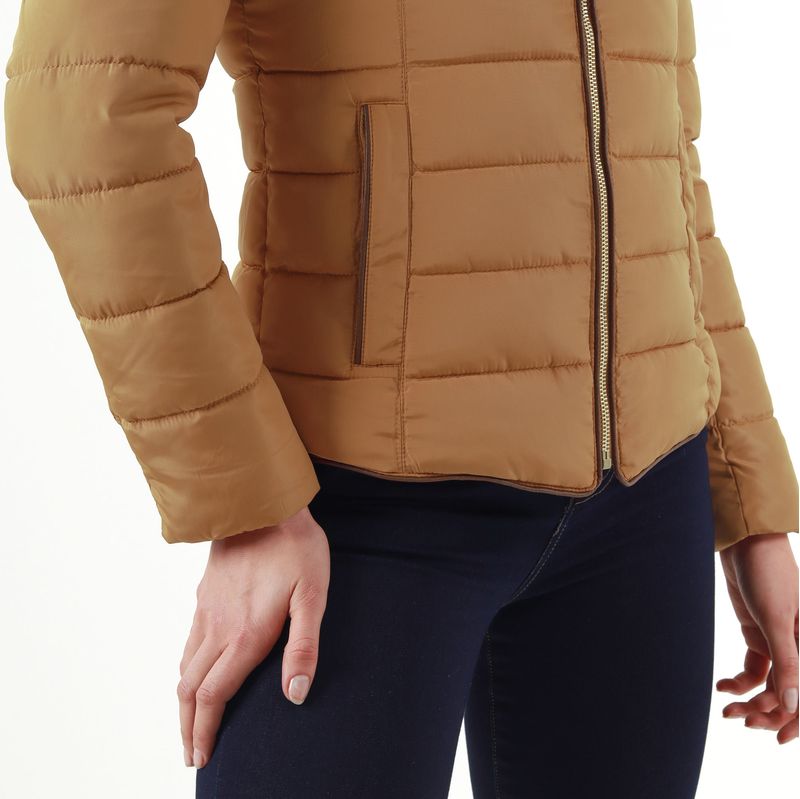 CHAQUETA DE CUELLO SUBIDO CON DETALLE PELO INTERNO Y CAPUCHA INCLUIDA OCULTA. MANGA LARGA ACABADA CON PUNO INTERIOR. BOLSILLOS DELANTEROS DE VIVO CON CREMALLERAS Y FORRO INTERIOR. CIERRE FRONTAL CON CREMALLERA METALICA Y CHARRETERA PARTE SUPERIOR CON HERAJES METALICOS.