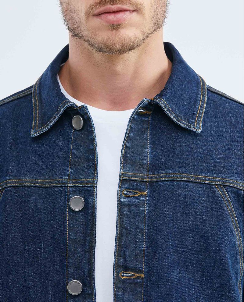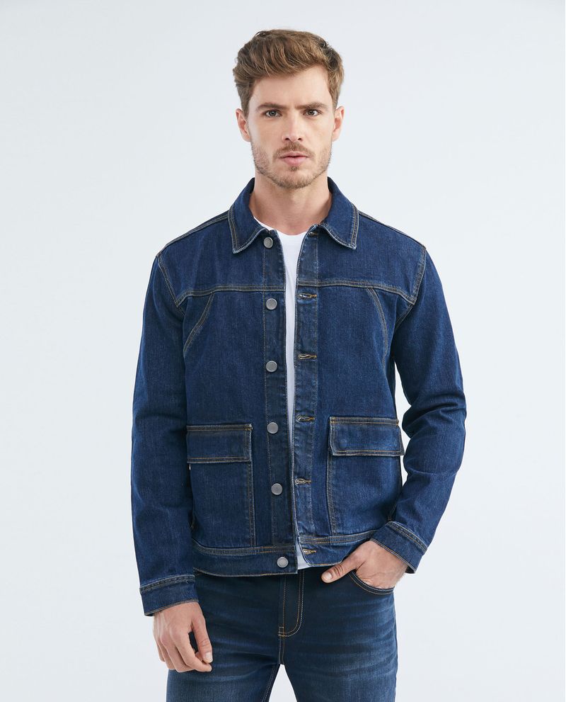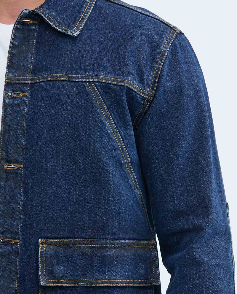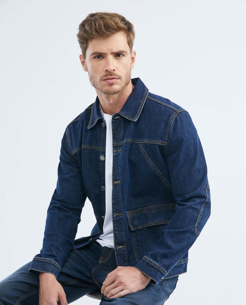 Chaqueta de Hombre en Denim, Tipo Militar Straight Fit - Azul Oscuro
