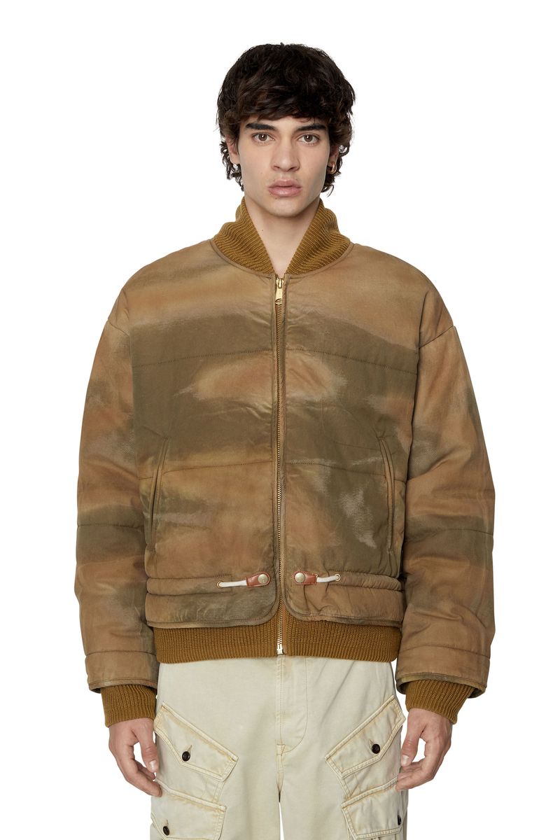 Diesel es una innovadora marca internacional de estilo de vida que produce una amplia colección de jeans, ropa y accesorios. Somos pioneros en denim y con el pasar de los años nos convertimos en una marca de ropa casual premium, siendo una verdadera alternativa en el mercado de lujo establecido. Somos una marca que representa la pasión, la individualidad y la autoexpresión. El Mundo DIESEL te espera. Chaqueta bomber acolchada de corte regular con diseño de archivo. Esta chaqueta de invierno unisex está hecha de sarga de algodón impresa en láser, teñida a mano y tratada con aerosol para lograr un efecto camuflaje. Además de ajustarse con el canalé grueso, el dobladillo se ajusta con un cordón. 100%Algodón, Elástico 77%Acrílico 20%Lana 3%Elastano País Origen: China El modelo viste una talla L y mide 182 cm