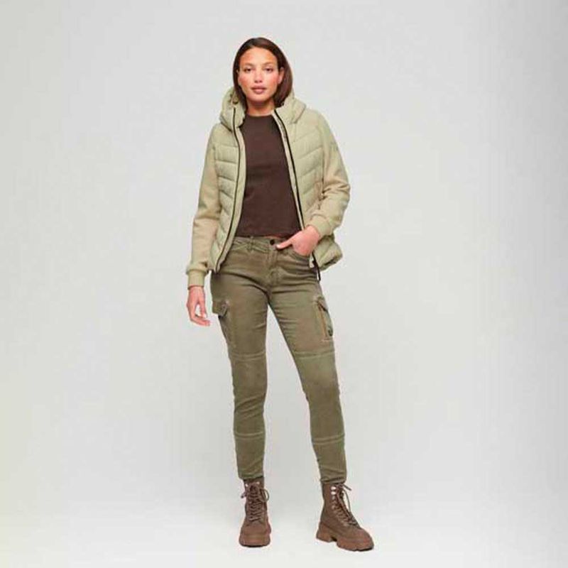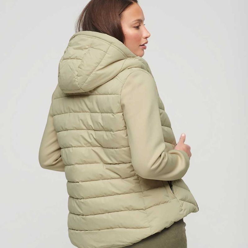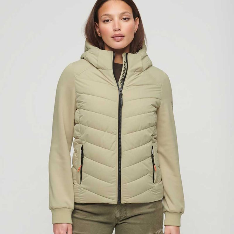 Consigue lo mejor de ambos mundos con esta chaqueta. Esta prenda, que combina el clásico cuerpo acolchado de una chaqueta con la suave comodidad de las mangas de una sudadera deportiva, es un complemento inigualable para tu fondo de armario de inspiración deportiva. Podrás combinar esta chaqueta con una gran variedad de looks y conseguir lo que buscas. Corte entallado: diseñado para ajustarse más al cuerpo para un look más elegante?. Longitud desde los hombros hasta el bajo en la talla RU10: 62 cm, Capucha con cordón de ajuste elástico, Cierre de cremallera, Cuerpo acolchado, Mangas de punto, Dos bolsillos con cremallera, Cordón de ajuste elástico en el dobladillo, Cuerpo forrado, Ribetes en la costura interior, Logotipos bordados de la marca.