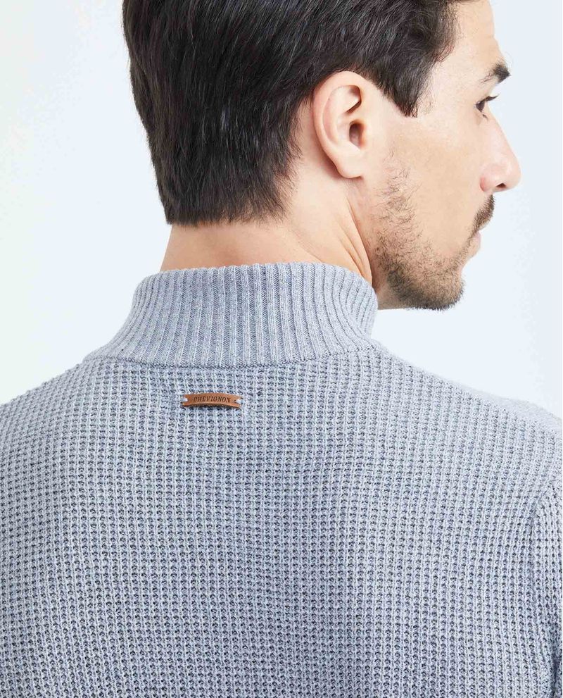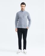 • Cuello nerú, perilla completa con cierre y bolsillo de parche en el pecho.