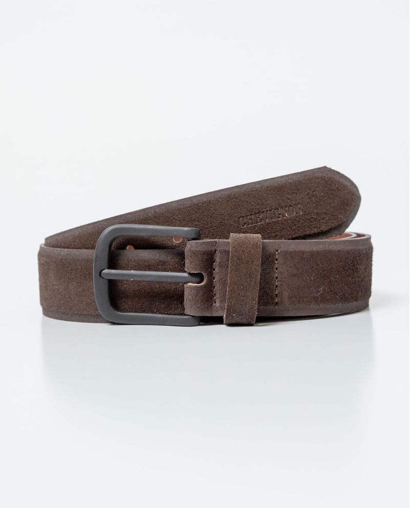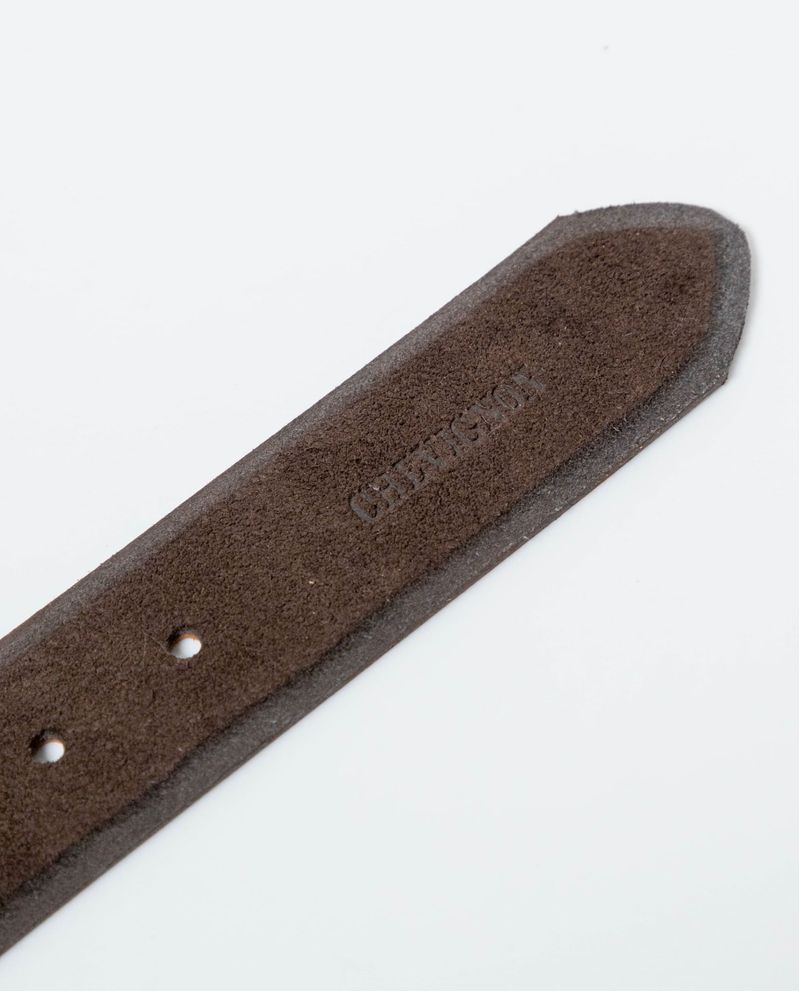 • Correa para hombre, elaborada en cuero carnaza: 100% piel vacuno, teñido con anilinas vegetales. • Hebilla en acabado negro mate. • Marcación en bajo relieve con el logo de Chevignon en la puntera. • Ancho: 3.9 cm.