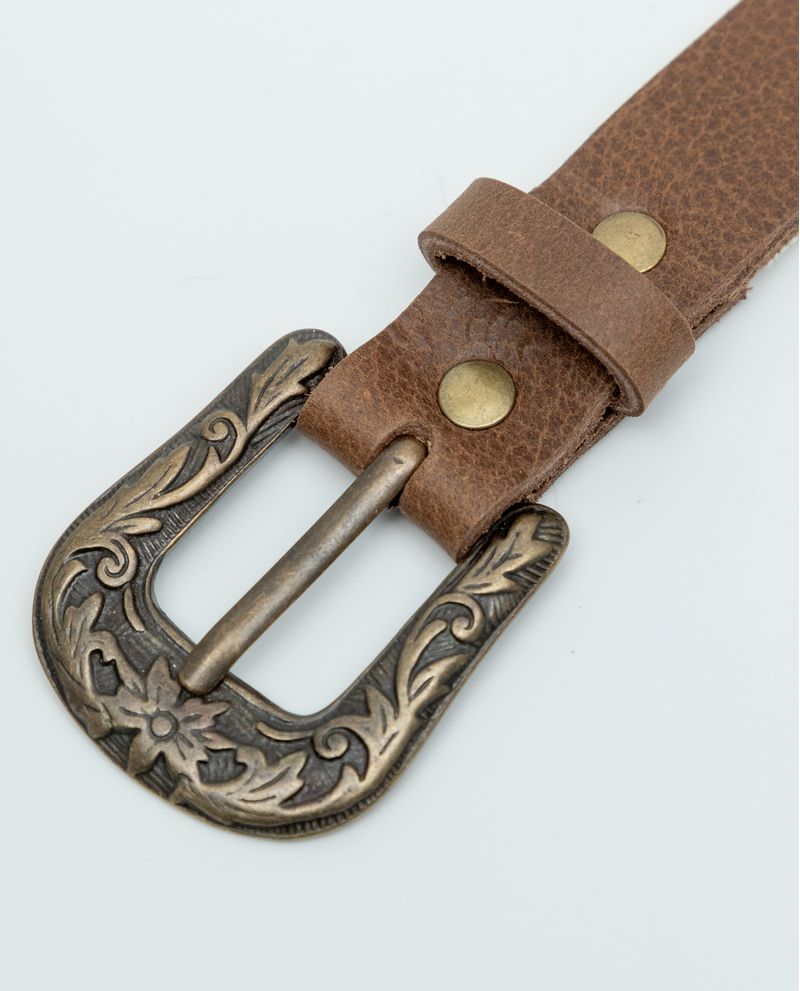 • Cinturón para mujer, elaborada en cuero crupón plena flor: 100% piel vacuno con acabado en ceras naturales.