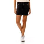 Falda corta en denim tiro alto. Con botón en pretina y cierre. Con bolsillos en cierre laterales. Confeccionado en mezcla de algodón de 300gr.