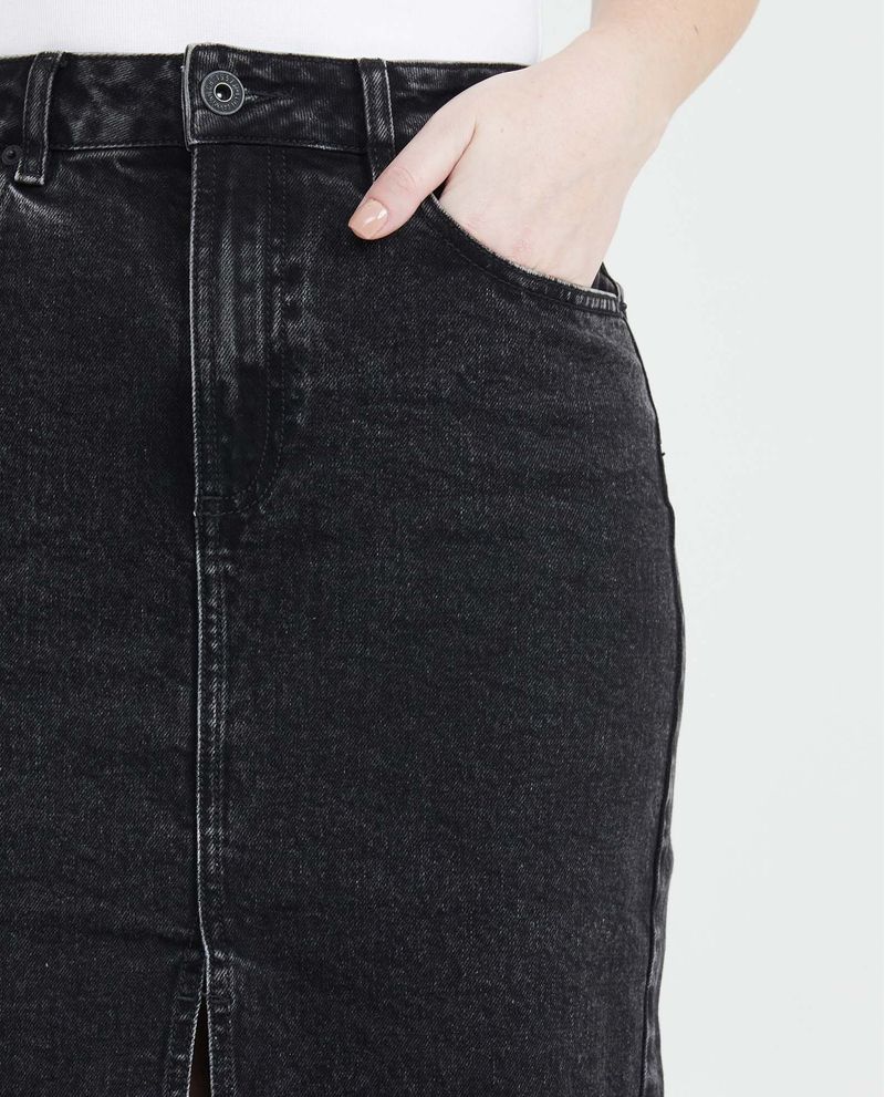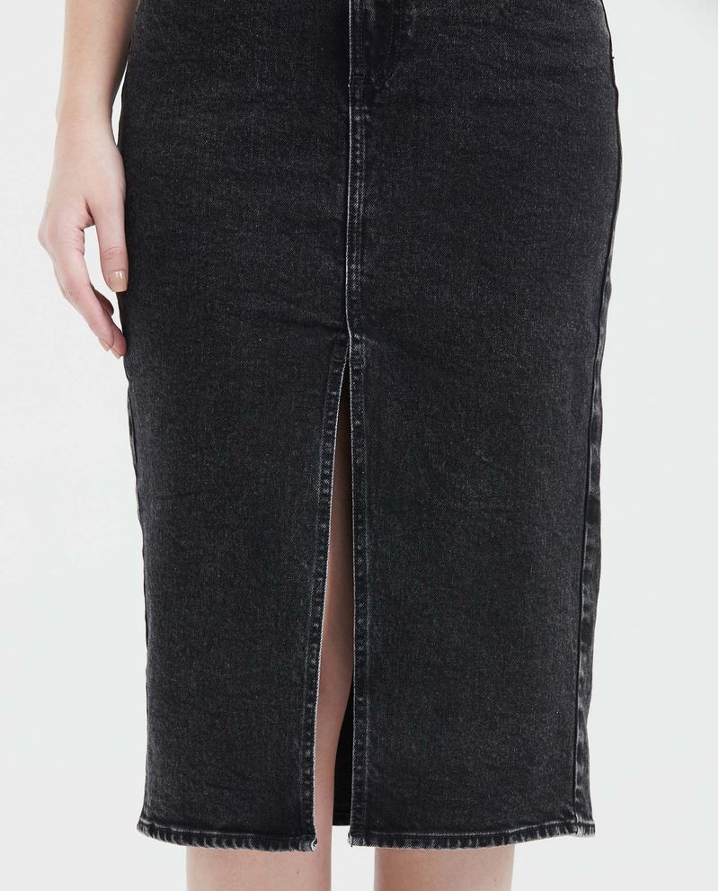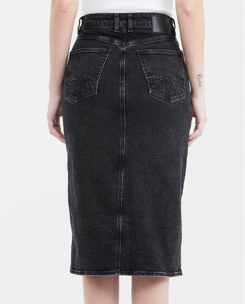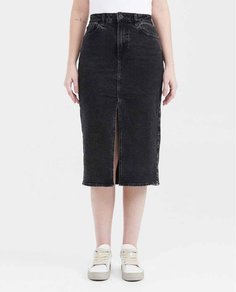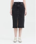 Con su tiro alto y largo midi, esta falda lápiz en denim es ideal para quienes buscan una combinación de estilo urbano y casual. El lavado stone realza sus costuras y añade un toque desgastado, creando un look casual-chic. Una pieza versátil y femenina que aporta carácter a cualquier look. Perfecta para combinar con camisas ligeras y sandalias en ocasiones casuales, y con tenis y camisetas crop amplias para un look más relajado.