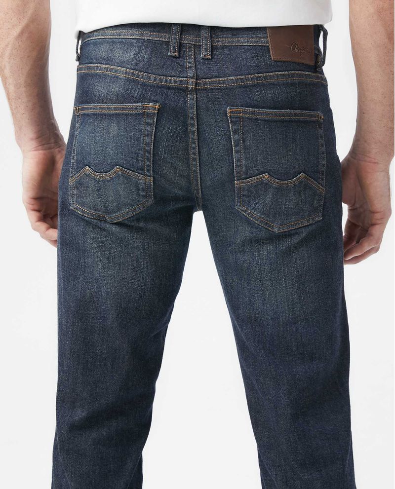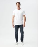 Jean de hombre, tiro medio, bota skinny. Tono oscuro con iluminaciones y bigotes suaves. Bocas de bolsillos adelante y bolsillos de parche atrás. Un básico del armario, que puedes combinar con camisas o camisetas dependiendo de la ocasión.