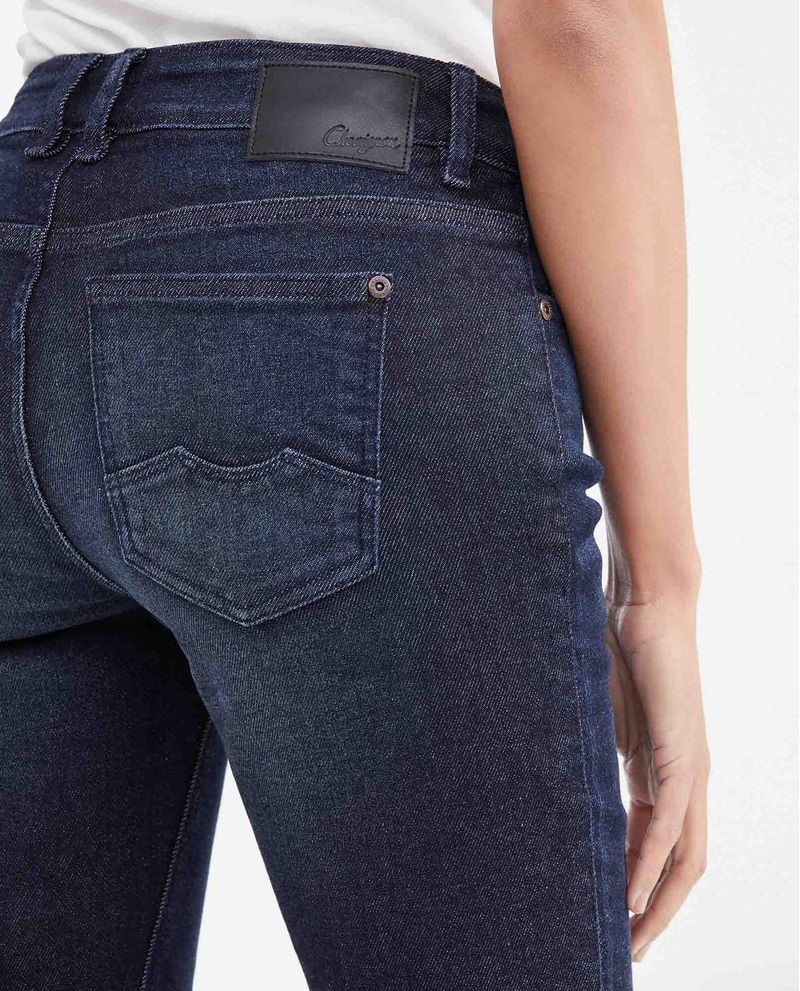 • Jean para mujer, Rusty: low rise, bota skinny. Color azul, tono ultra oscuro.