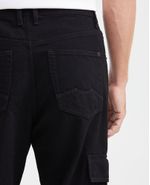 • Pretina tradicional con botón metálico, aletilla con cierre, bolsillos delanteros, relojera, dos bolsillos tipo cargo en los laterales, garra de cuero en la pretina posterior, bolsillos traseros de parche y bota recta.