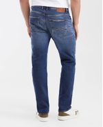 • Pretina tradicional con botón metálico, aletilla con cierre, bolsillos delanteros, relojera, garra de cuero en la pretina posterior, bolsillos traseros de parche y bota recta.