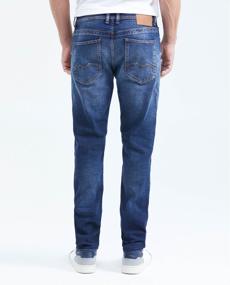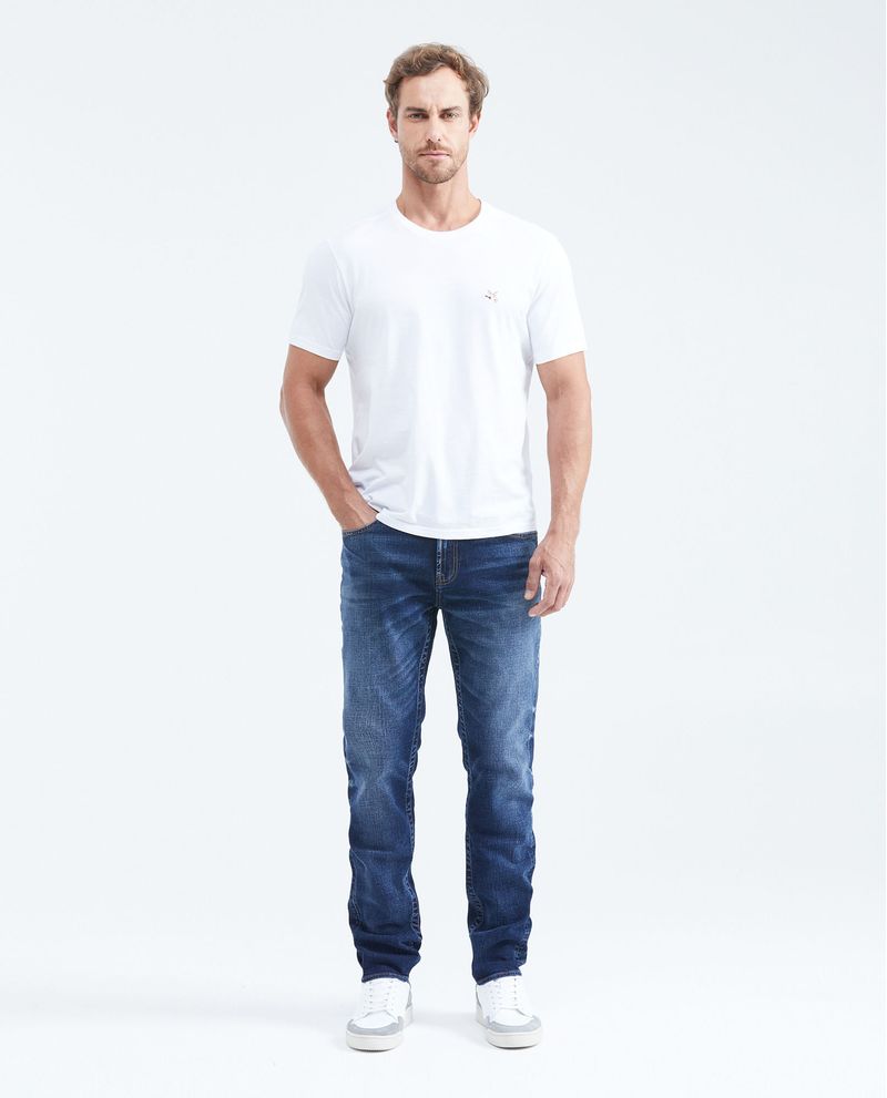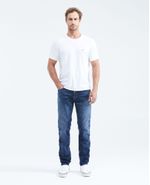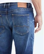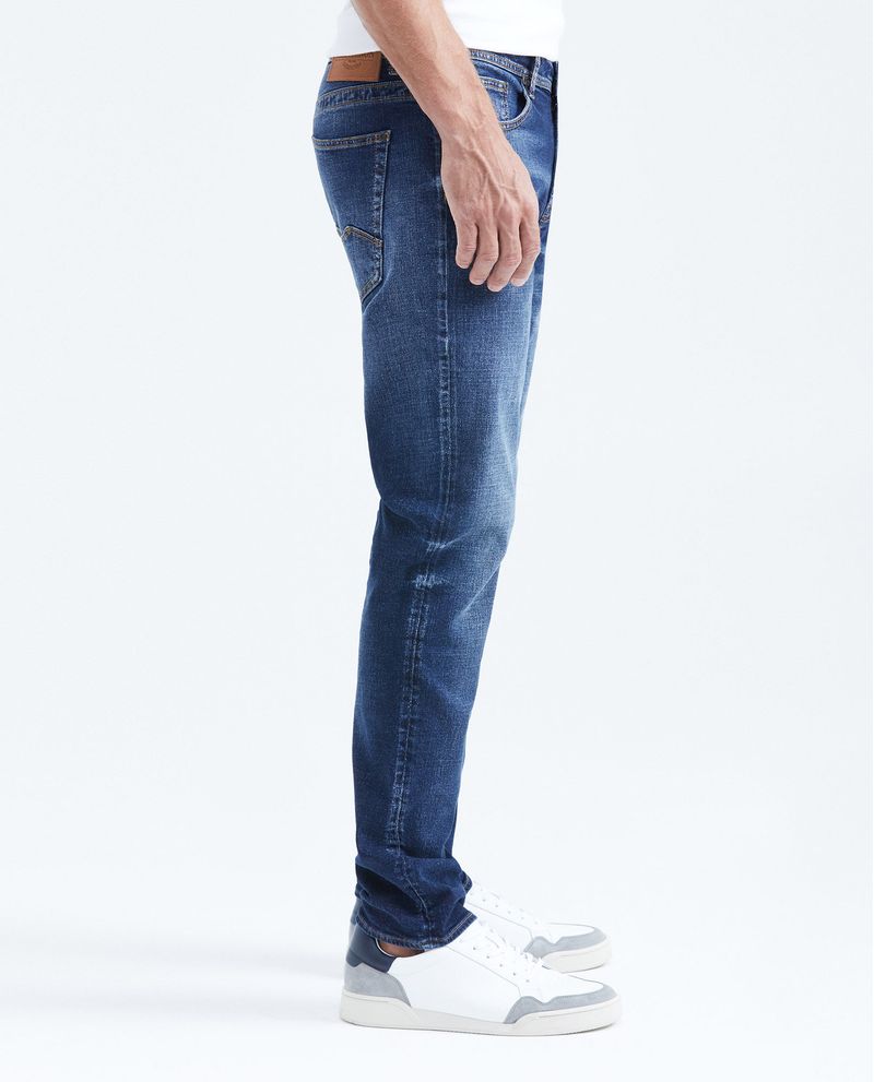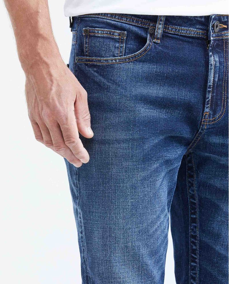 • Jean para hombre, Famous: slim fit, bota slim. Color azul, tono oscuro.