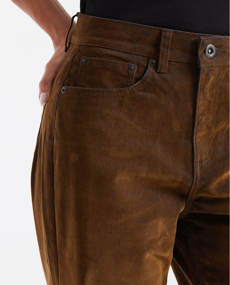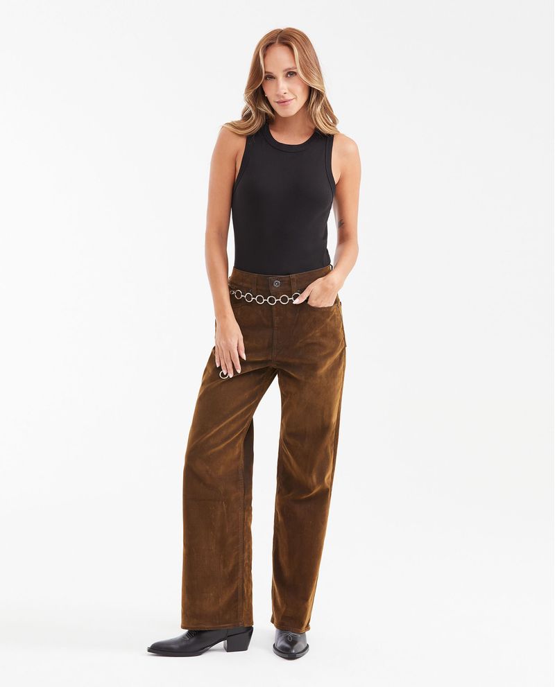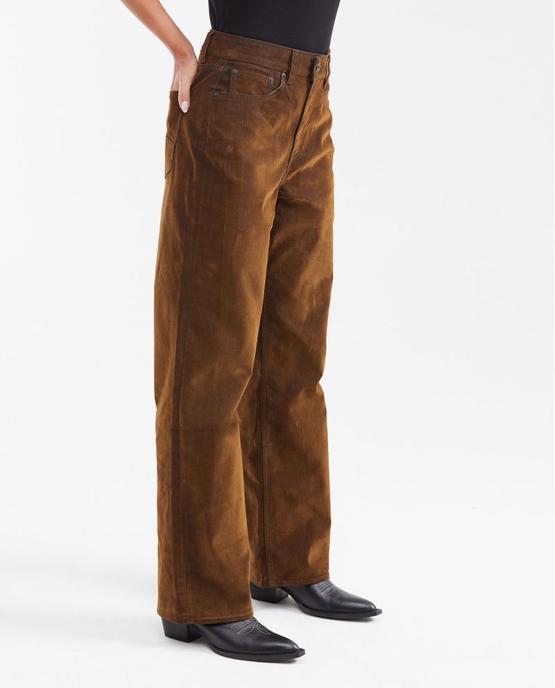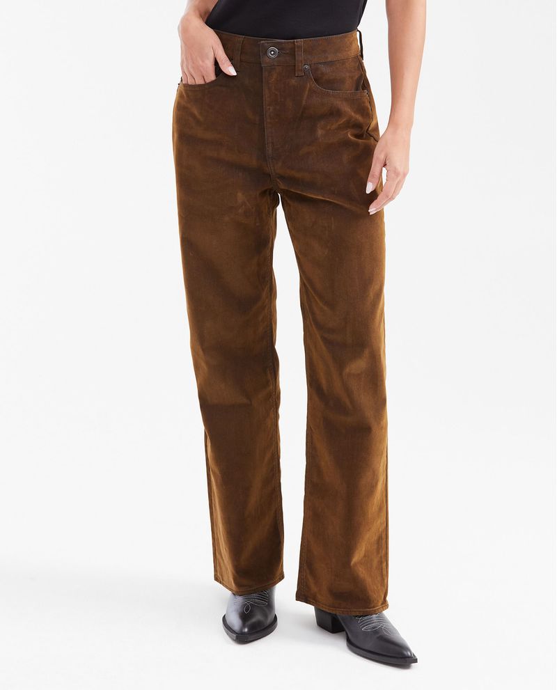 • Jean para mujer, Straight fit: super high rise, bota relaxed. Color café.