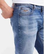 • Jean para hombre, Morrison: straight fit, bota slim. Color azul, tono medio.