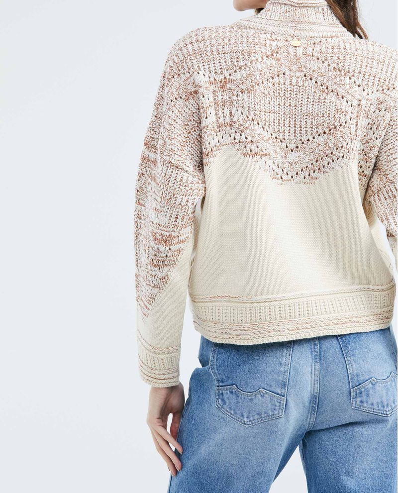 Saco Tejido de Mujer, Silueta Relajada Cuello Tortuga - Bloques de Color