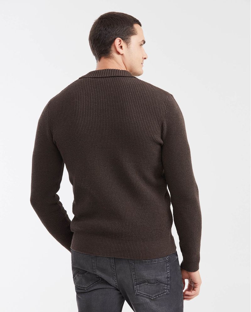 • Suéter tejido para hombre tipo polo, silueta recta.