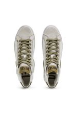 Diesel es una innovadora marca internacional de estilo de vida que produce una amplia colección de jeans, ropa y accesorios. Somos pioneros en denim y con el pasar de los años nos convertimos en una marca de ropa casual premium, siendo una verdadera alternativa en el mercado de lujo establecido. Somos una marca que representa la pasión, la individualidad y la autoexpresión. El Mundo DIESEL te espera. Esta deportiva alta de piel está actualizada con la marca D en relieve y adornos de gamuza a tono. Tanto la pala como la suela de goma vulcanizada presentan un tratamiento con efecto de suciedad para un aspecto usado. Presenta un detalle de triple costura en el refuerzo de los ojales. 100%Cuero Bovino País Origen: China