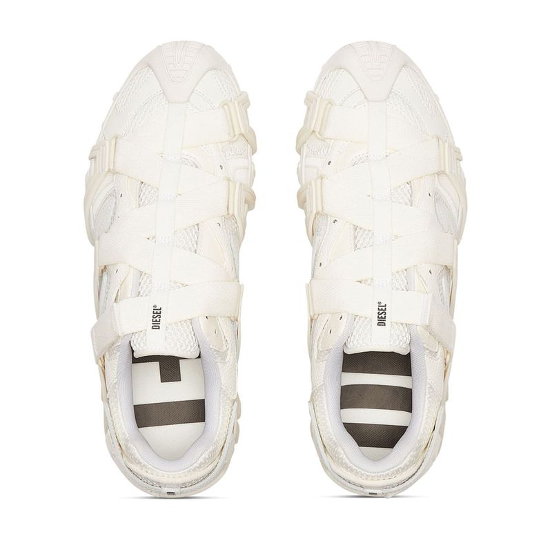 Tenis para hombre s-prototype-cr. Deportivas para hombre de la fw runway show collection '22 confeccionadas en malla transpirable recubierta con cuero. este calzado presenta un arnés tipo jaula hecho de tirantes cruzados de cordellate y soportes de goma que se conectan con la suela industrial. la suela envuelve la puntera y termina con un ‘diente’ de goma para lograr un aspecto único. la variante roja de este artículo es una edición limitada.