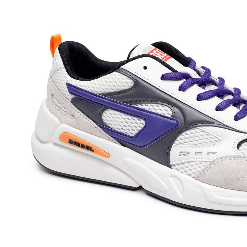 Diesel es una innovadora marca internacional de estilo de vida que produce una amplia colección de jeans, ropa y accesorios. Somos pioneros en denim y con el pasar de los años nos convertimos en una marca de ropa casual premium, siendo una verdadera alternativa en el mercado de lujo establecido. •Somos una marca que representa la pasión, la individualidad y la autoexpresión. El Mundo DIESEL te espera. Deportivas de malla con gamuza de estilo vintage y suaves capas superpuestas acolchadas. Presentan un parche D y una etiqueta Diesel For Successful Living prensada en caliente en la lengüeta. Se asientan sobre una suela deportiva acolchada. • 100%Poliéster País Origen: Vietnam