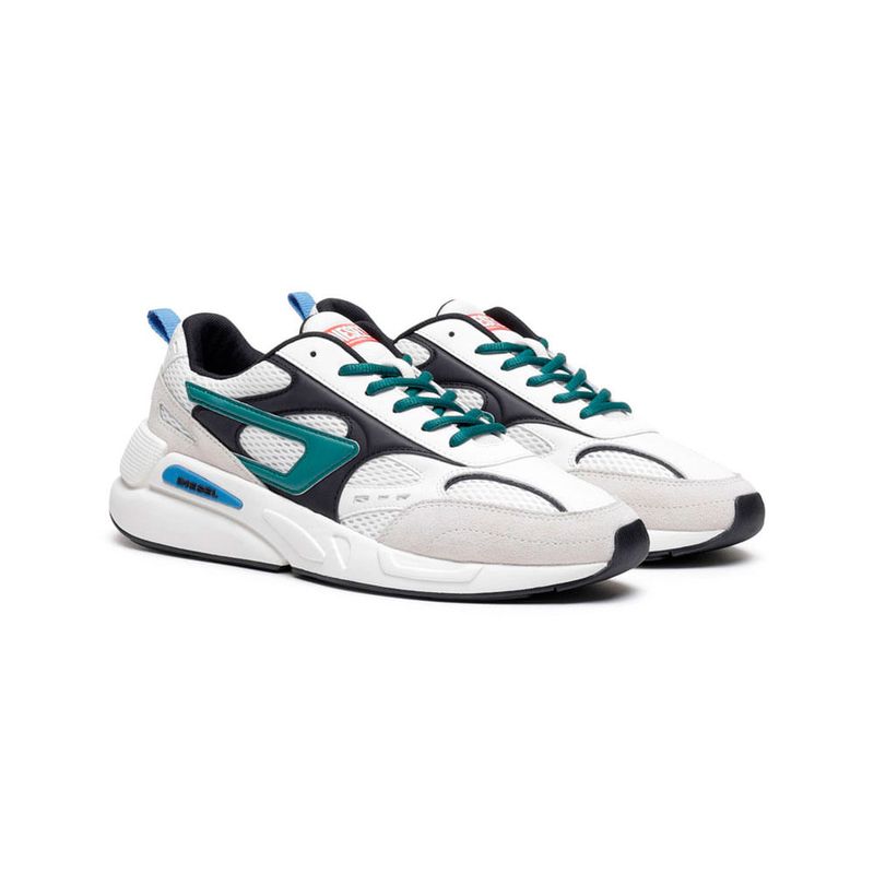 Deportivas de malla con gamuza de estilo vintage y suaves capas superpuestas acolchadas. presentan un parche d y una etiqueta Diesel for successful living prensada en caliente en la lengüeta. se asientan sobre una suela deportiva acolchada.