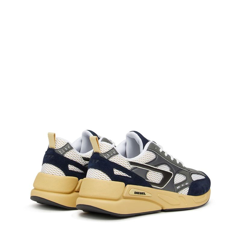 •Deportivas de malla rematadas con capas superpuestas de gamuza acolchada metálica y vintage, apoyadas en una suela acolchada. presentan un parche d lateral y una etiqueta Diesel for successful living prensada en caliente en la lengüeta.