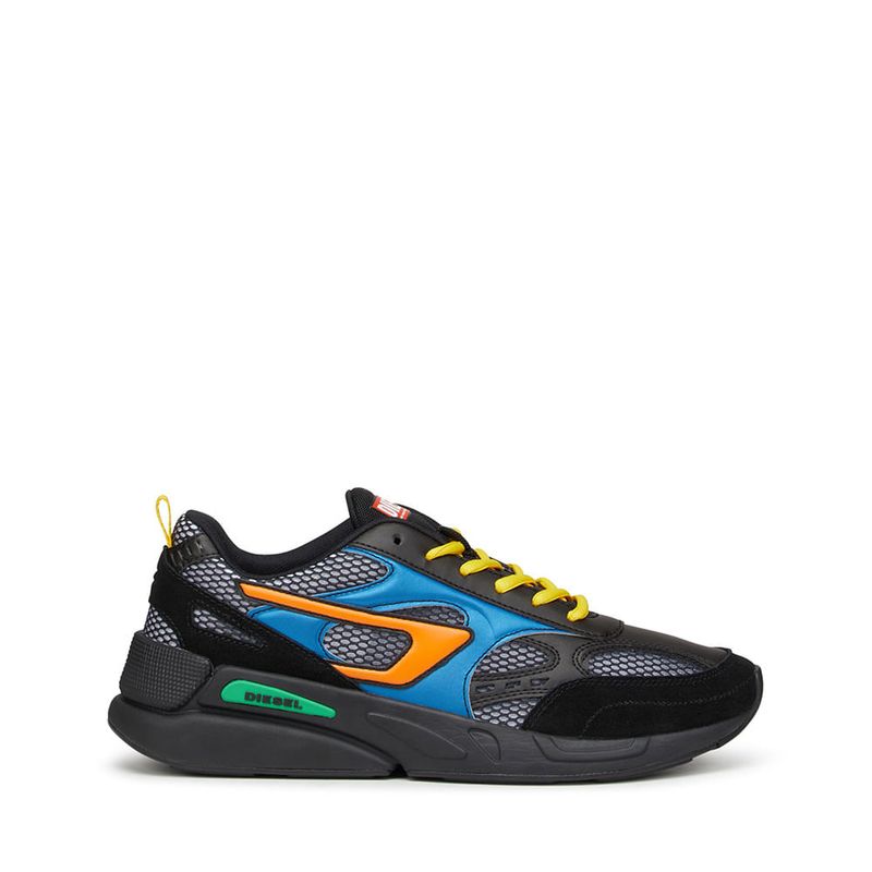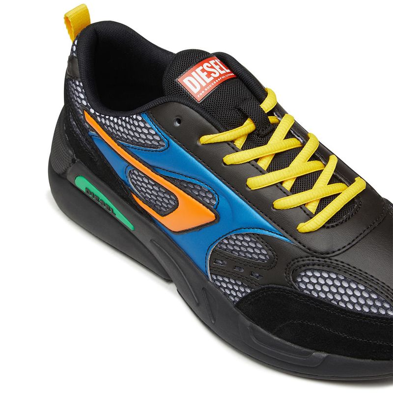 •Deportivas de malla rematadas con capas superpuestas de gamuza acolchada metálica y vintage, apoyadas en una suela acolchada. presentan un parche d lateral y una etiqueta Diesel for successful living prensada en caliente en la lengüeta.