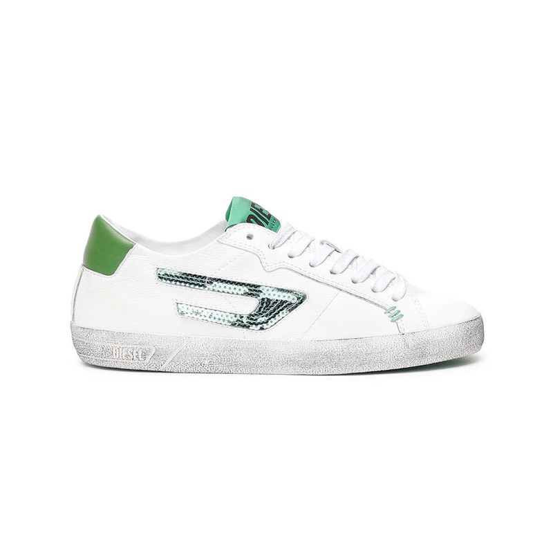 Estas deportivas unisex están confeccionadas en piel suave, decoradas con un logotipo ‘D’ con lentejuelas, y tienen un estilo ligeramente desgastado y usado. La pala baja está adornada con detalles coloridos y tres costuras en el refuerzo de los ojales. - Artículo con cordones