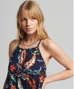 Tanto si estás tomando el sol en la playa como si quieres recrear el ambiente de las vacaciones en casa, este vestido es perfecto para ti. Sus delicados detalles y su silueta auténtica lo convierten en un clásico al instante. Corte relajado: el corte clásico de Superdry. Ni muy estrecho ni muy holgado, simplemente perfecto. Elige tu talla habitual, Diseño atado al cuello, Tirantes y bordes trenzados, Dos bolsillos en las costuras laterales, Detalles de encaje, Tirantes con botones, Placa metálica con el emblemático logotipo de Superdry.
